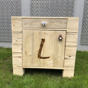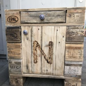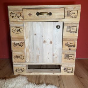 Neutrale Kommode aus EUR-Paletten mit Schublade (Soft-Close) und einem grossen Fach mit Türe (Soft-Close). Die Griffe für Schublade und Türe […]