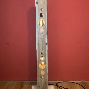 Ständerlampe schmal (10 cm). Die Lampe ist mit Old English-Messingfassungen (E27) ausgestattet und Texilkabel (schwarz). Kippschalter an der Oberseite zum […]